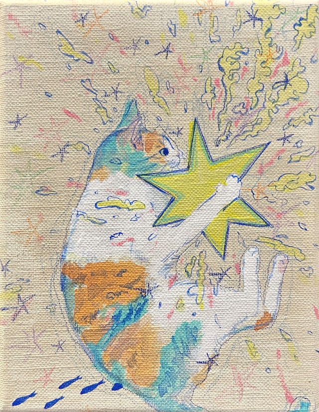 poporoのキャンバス作品『ながれぼし』の購入ページです。 素材→キャンバスにアクリル絵の具、色鉛筆 サイズ→F0