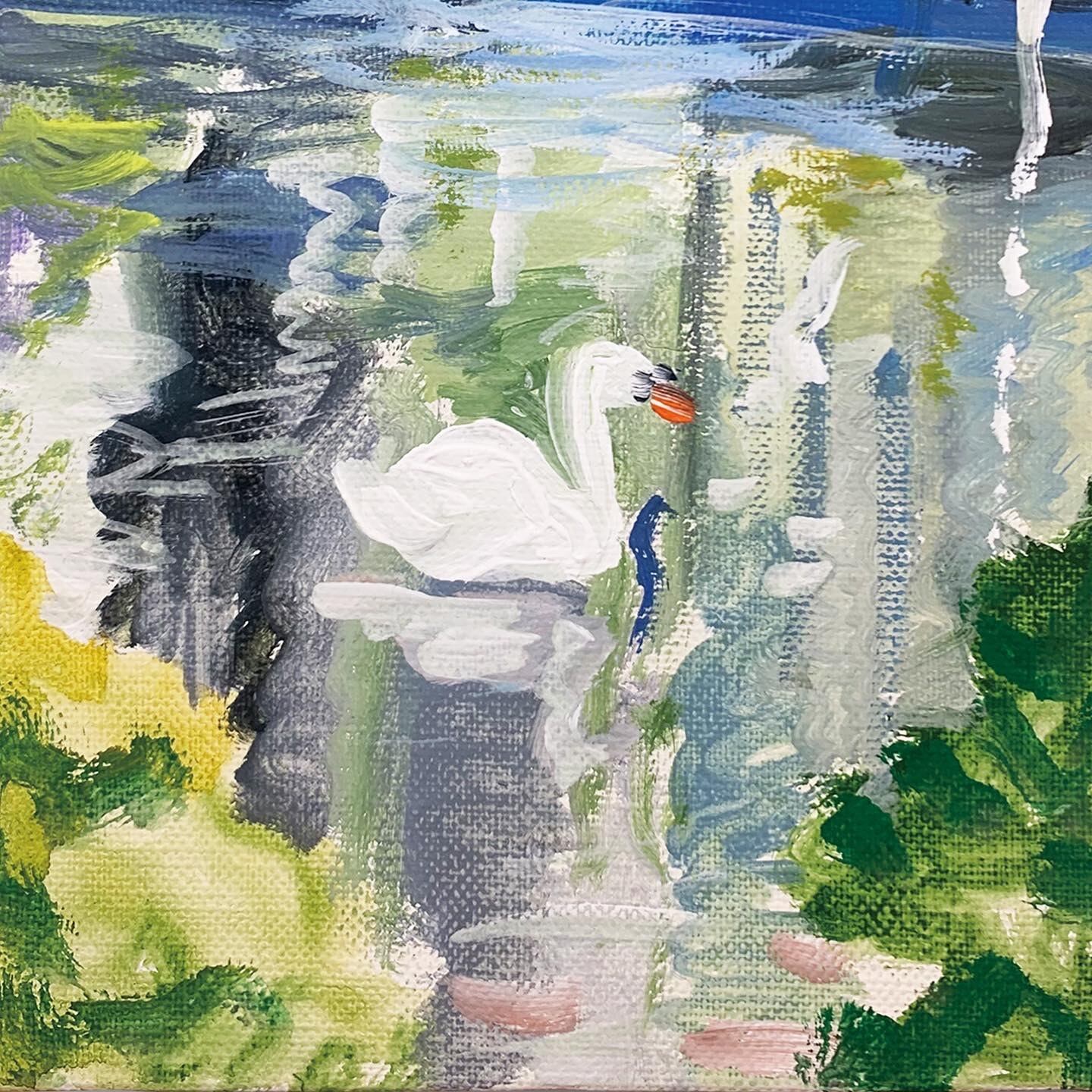 この作品は東京へ行った時に皇居外苑で見た白鳥を描いたものです。人が多いところが苦手な私にとって東京は少し苦しく感じる場所ですが、白鳥を見ている時だけはここは都会ではない別の場所のように感じ心が安らぎました。